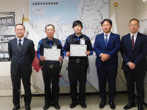 従業員に対し大阪府警察本部交通部高速道路交通警察隊長より感謝状贈呈
