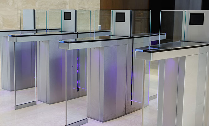 IDカード認証や生体認証により、正しく認証された場合のみ通行を許可するゲートです。共連れを防止するため、セキュリティ性が求められるデータセンターやオフィスビル等のエントランスなどへの設置が増えています。